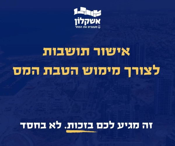 Информация от муниципалитета Ашкелона о порядке оформления налоговой льготы