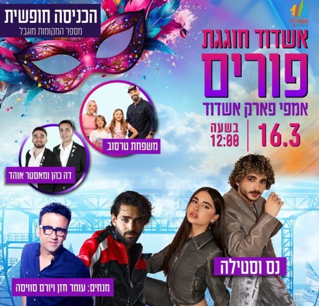 Главное событие Пурима в Ашдоде состоится 16 марта: концерт с участием звёзд и бесплатный вход!