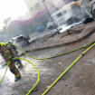 Пожарно-спасательная служба сообщила. что скорело 7 автомобилей, еще 4 пострадали. При попадании в здание пожара не было.