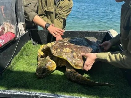 Солдаты военно-морской базы в Ашдоде спасли раненую морскую черепаху