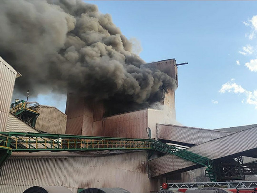 Это пожар фосфатно-сыпучего конвейера, проникшего в здание сортировки.