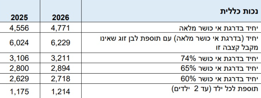 Размеры пособий по частичной инвалидности смотрите ниже в таблице (иврит).
