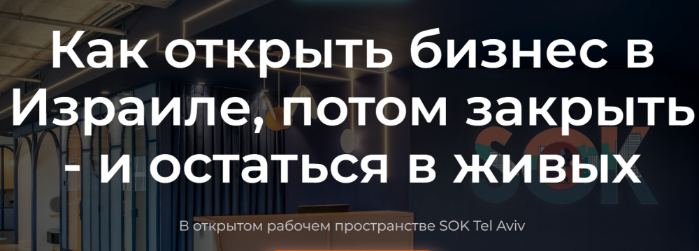 17 августа в Тель-Авиве, в коворкинге SOK пройдет бизнес-семинар на тему "Как (НЕ) открыть бизнес в Израиле – 3".