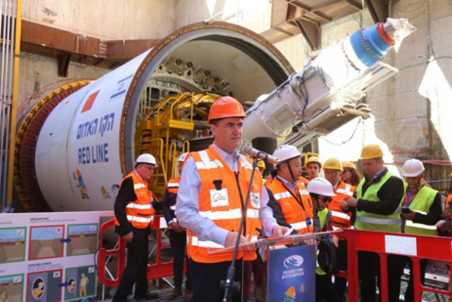 Сегодня начались работы по прокладке тоннелей на "красной" линии метротрамвая в Тель-Авиве и Гуш-Дане. Министр транспорта и разведки Исраэль Кац лично запустил первый ТПК. Речь идет о гигантском тоннеле-проходческом комплексе, который производит работы по проходке тоннеля на глубине 30 метров под землей.