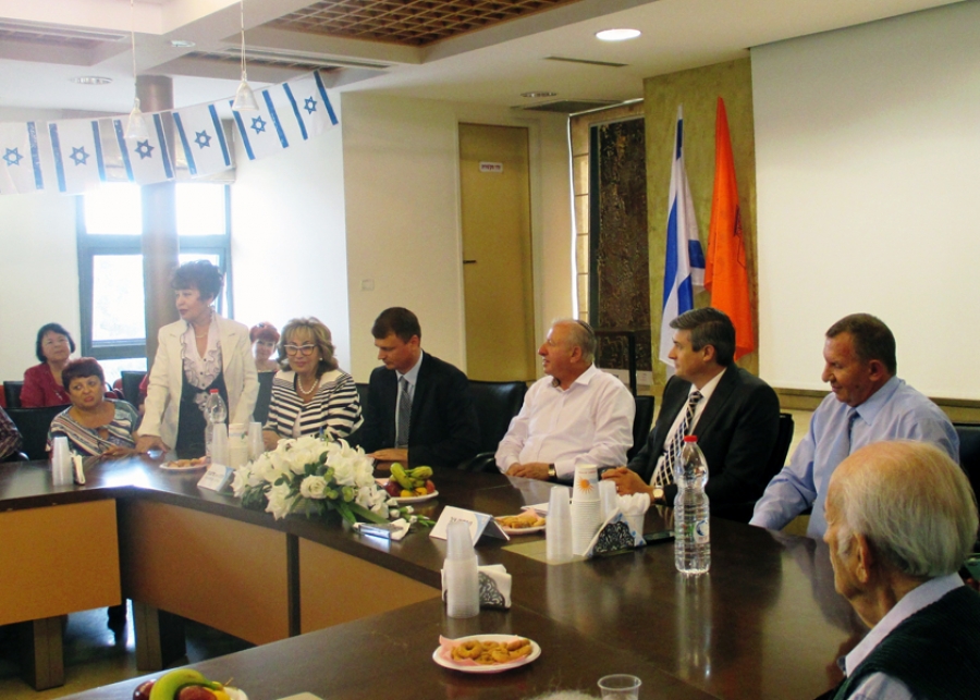 'Недавно назначенного посла сопровождали советник посольства Молдовы в Израиле Григорий Бутуча и заместитель исполнительного директора Всеизраильского Объединения выходцев из Молдовы «Извораш» Ася Халфин. Визит этой представительной делегации состоялся по инициативе бессменного председателя объединения выходцев из Молдовы Милы Беккер и был организован зам мэра города Аликом Солтановичем.