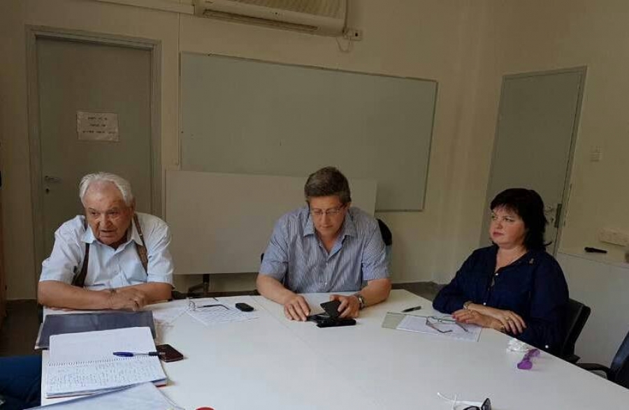 На фото: совещание в Тель Авиве. Софа Бэйлина, заместитель мэра Ашкелона, Абрам Гринзайд, председатель всеизральского Союза Ветеранов Второй Мировой Войны, борцов против нацизма и Леонид Летинецкий, председатель координационного совета общественных организаций Соотечественников обсуждают возможность объединения двух организаций.