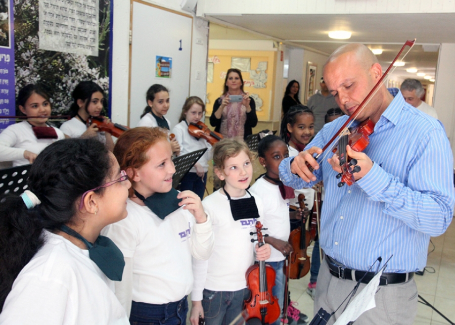 'В рамках регулярного посещения школ и других учреждений образования мэр города Итамар Шимони побывал в начальной школе «Ротем». Его сопровождали ген директор муниципалитета Хаим Софер и начальник управления образования Ицхак Брига. Гостей встречал ансамбль скрипачей школы, которые, параллельно с учёбой в школе, занимаются в городской консерватории.