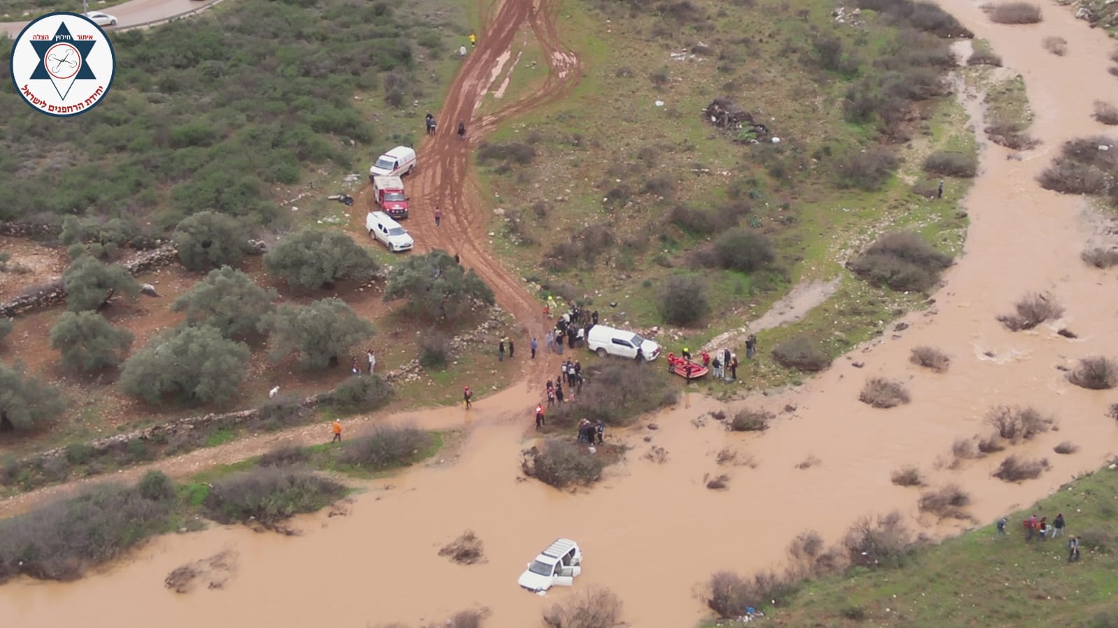 В русле ручья Шило в округе Иудея и Самария спасатели эвакуировали троих человек, среди них — маленький ребёнок. Их автомобиль застрял во время внезапного паводка, и люди оказались заблокированы на крыше машины.