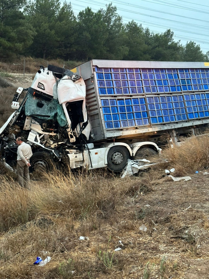 Рано утром 13 сентября произошла авария на 6-й трассе к северу от развязки Кирьят-Гат – столкнулись четыре грузовика.