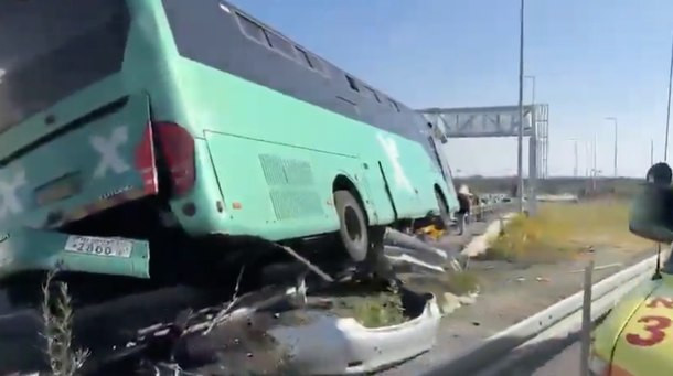 На Приморском шоссе в районе развязки Полег произошла авария с участием пассажирского автобуса компании «Эгед».