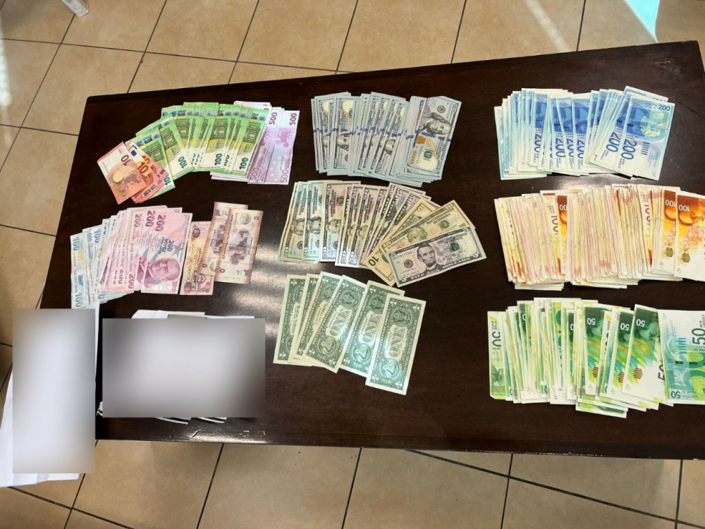 В ходе обыска, проведенного вчера в доме одного из подозреваемых, жителя города Ашдод, были изъяты наличные деньги и иностранная валюта на сумму около 100 000 шекелей, которые предположительно получены в результате вымогательства, пистолет для страйкбола и автомобиль.