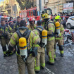 10 пожарных расчетов работают над тушением пожара и предотвращением его распространения и распространения дыма по всему зданию.