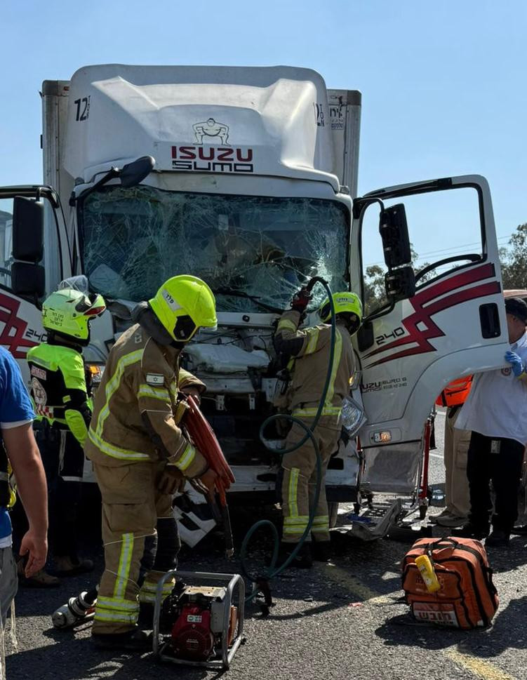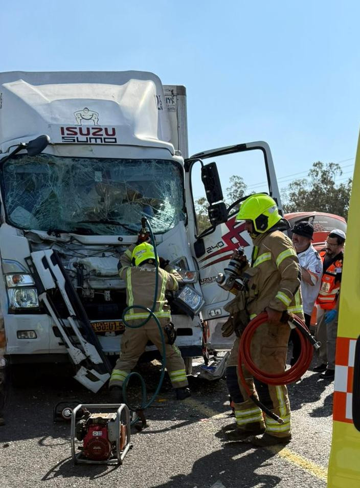 Сегодня утром (в четверг) пожарные работали над спасением водителя грузовика, чья нога оказалась зажата в результате серьезного дорожно-транспортного происшествия между двумя грузовиками на развязке Сорек, шоссе 3.