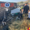 Десятки коров оказались в ловушке после того, как грузовик, перевозивший их, перевернулся в долине реки Иордан, пожарные работали над их спасением.