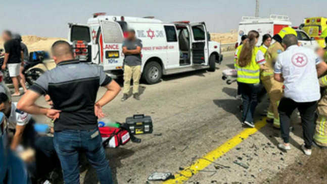 Сообщение об аварии поступило в колл-центр MDA в регионе Негев в 5:51. Медики MDA и парамедики констатировали и эвакуировали в Сороку четырех пострадавших: 34-летнего мужчину в тяжелом состоянии с травмами конечностей, 23-летнего мужчину в состоянии средней тяжести с травмами конечностей и двоих в легком состоянии.