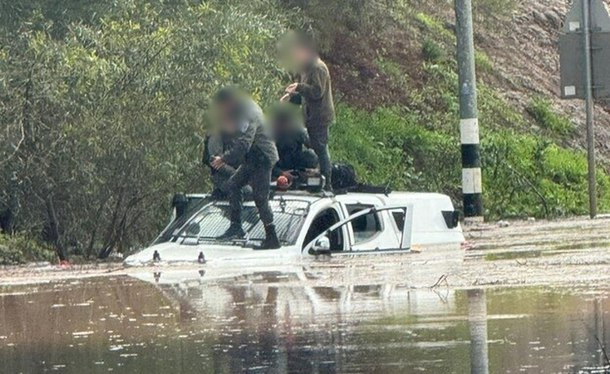 На шоссе №65 в районе поселка Мегидо спасатели вызволили 4-х человек, чья машина практически полностью ушла под воду. Высота воды в том месте, где был припаркован автомобиль, составляла более 1.5 метров.