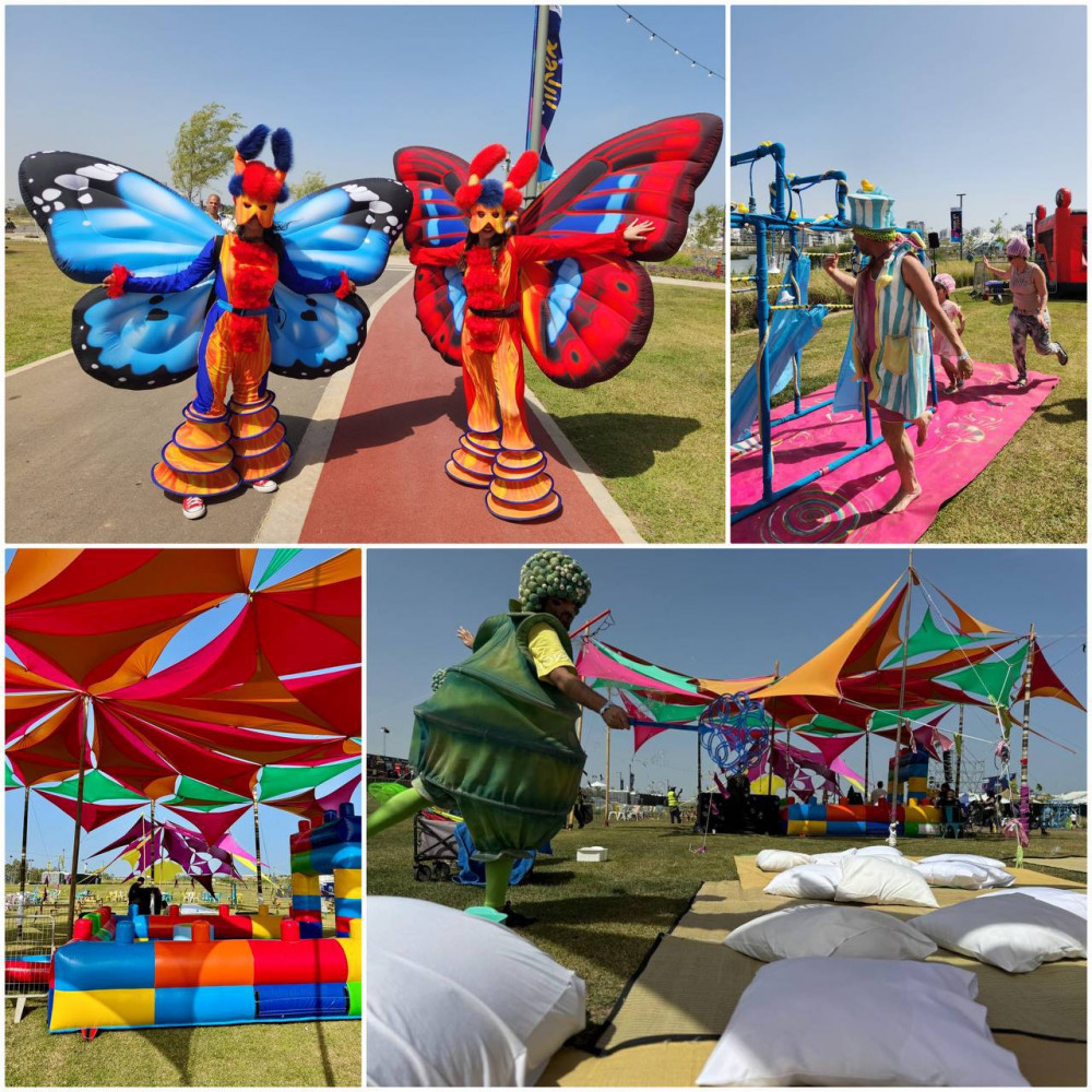 Фестиваль включает в себя затененные площадки, спектакли, шоу жонглирования, творческие мастерские, уличных художников, ходьбу на костылях, макияж для тела и другие сюрпризы.