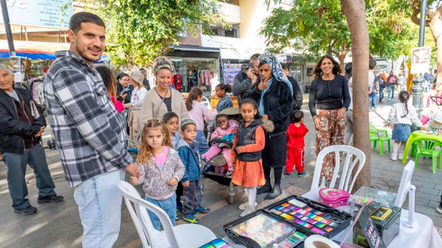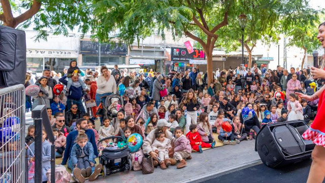 Многие семьи пришли отметить фестиваль огней на мероприятии Ханукейф в пешеходной зоне выступлениями Идан Маадан и Лалуш.