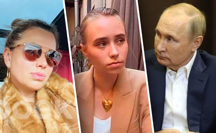 Светлана Кривоногих, Елизавета (Луиза) Розова (Руднова) и Владимир Путин. Заметна схожесть 23-летней девушки с отцом. Живет она в Париже. Коллаж: соцсети