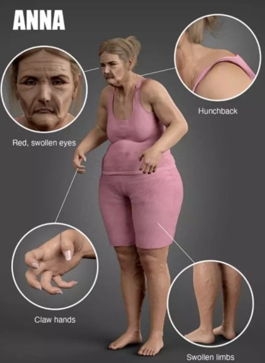 И вот исследователи составили модель по имени Анна - женщину, которая живет в 2100 году и уже не в первом поколении работает дома. На изображениях можно увидеть, что у Анны горб, опухшее лицо и темные глаза. Более того, ее длинные руки стали похожи на когти.