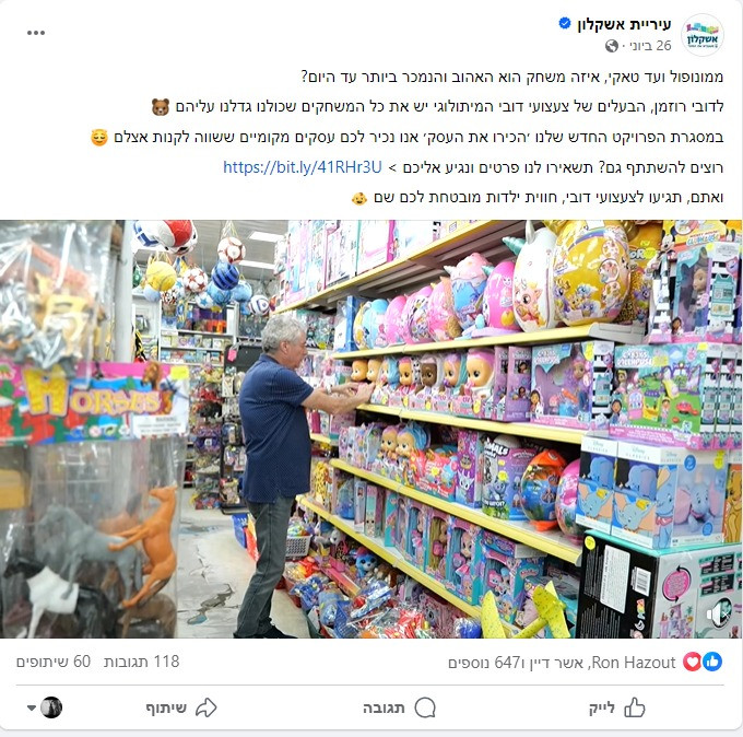 Муниципалитет Ашкелона приглашает жителей Ашкелона сейчас больше, чем когда-либо, воспользоваться услугами местных владельцев бизнеса, стимулировать местное потребление и перезапустить экономику, которая была повреждена в период боевых действий на юге в целом и в Ашкелоне в частности.
