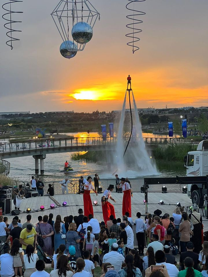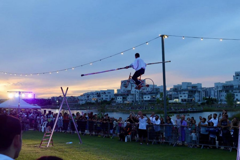 И во второй день фестиваля на фестивальном острове присутствующие наслаждались захватывающими и особенными аттракционами на фоне самого большого искусственного озера в Израиле.