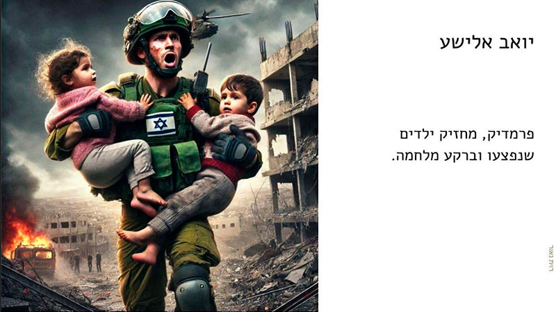 Например, Офри Колтакер из 6-го класса создал картину, на которой лев, завернутый в израильский флаг, сражается рядом с солдатами, а на его спине едет женщина-воин, выражая силу и храбрость.