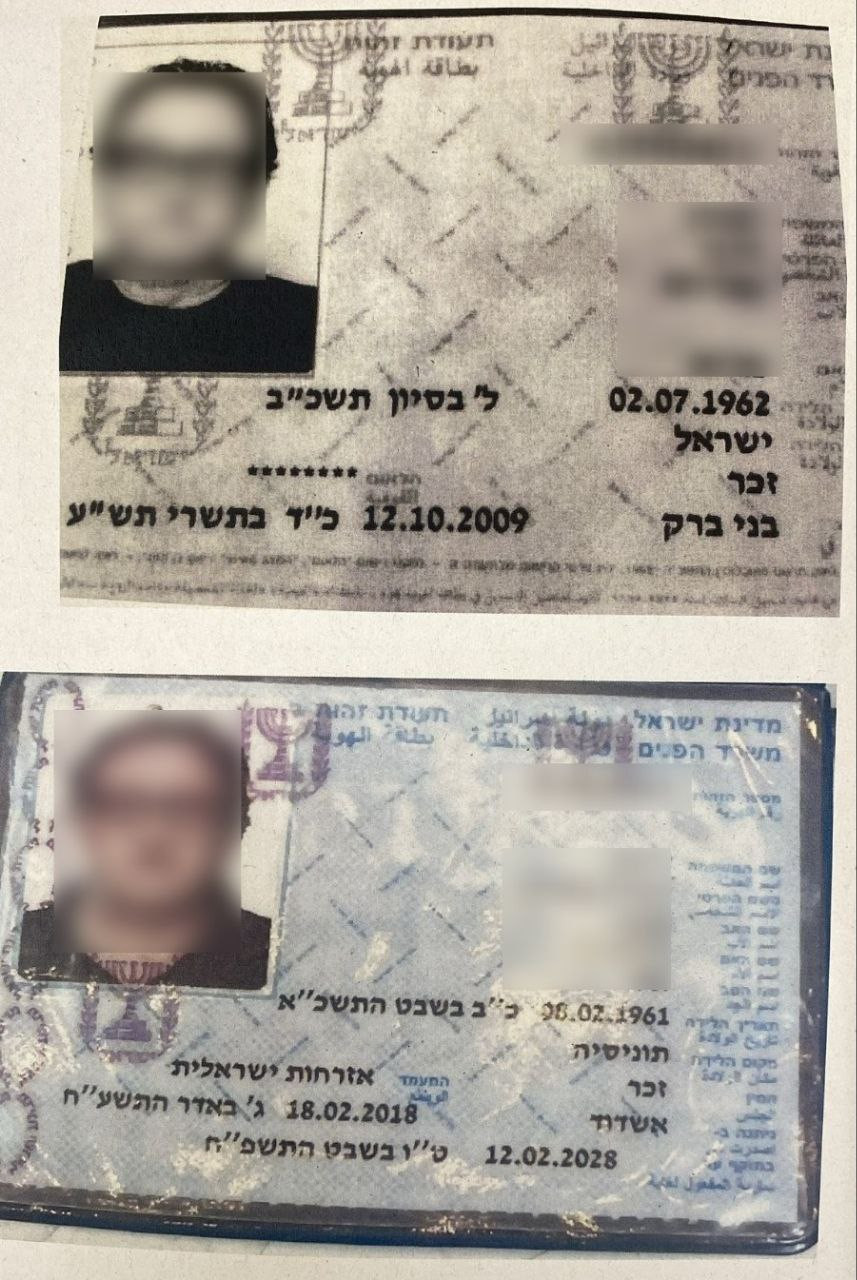 В ходе рейда полиции в дом подозреваемого (56 лет, жителя Ашкелона) были изъяты различные документы, удостоверения личности с данными гражданина и фотографиями подозреваемого, украденные дебетовые и проездные карты.