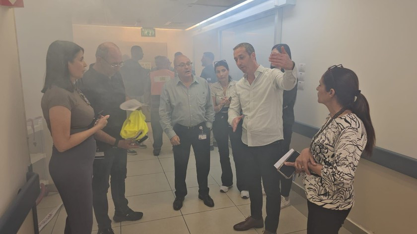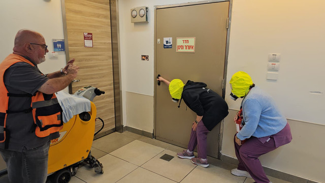 В учениях приняли участие администрация больницы во главе с профессором Хези Леви и персонал больницы.
