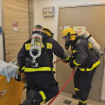 В ходе учений бригады госпиталя работали вместе, выполняя сканирование на предмет пожаротушения и спасая пострадавших из здания.