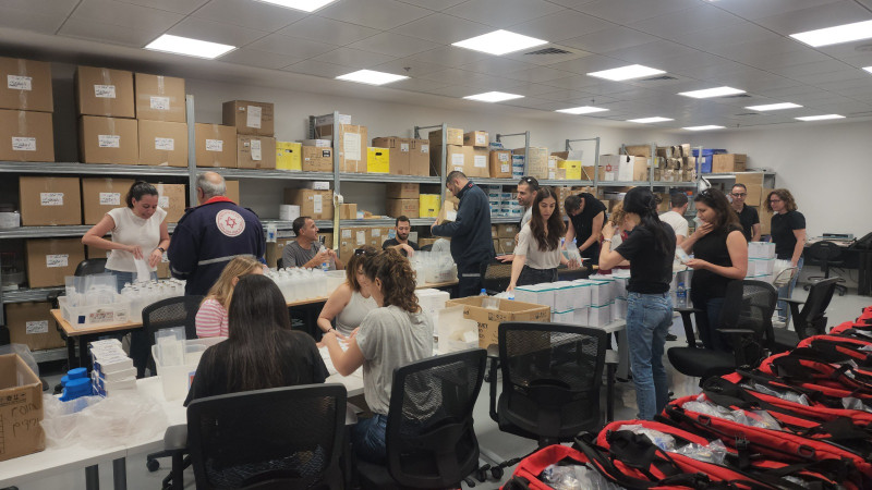 Израильские добровольцы подготовили сумки с медицинским оборудованием для подразделений быстрого реагирования MDA.A - которые являются первой линией обороны во время чрезвычайных ситуаций и помогают спасать жизни.