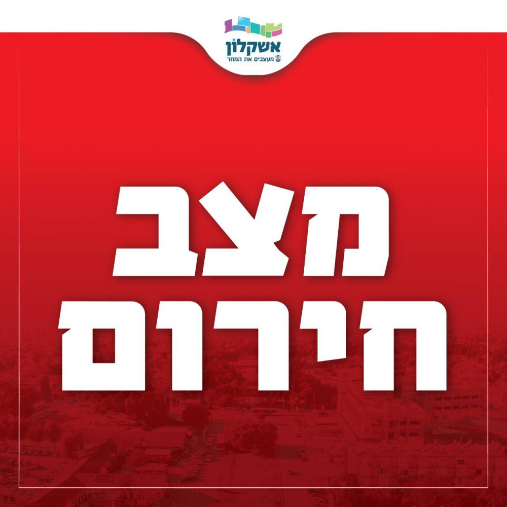В связи с введением чрезвычайного положения жителей Ашкелона просят оставаться в своих домах до дальнейшего уведомления.