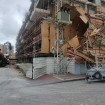 По прибытии на место пожарные приступили к первичному осмотру строительной площадки, где обрушились все строительные леса вокруг нее, а также имеется повреждение линии высокого напряжения, представляющее опасность для пожарных.