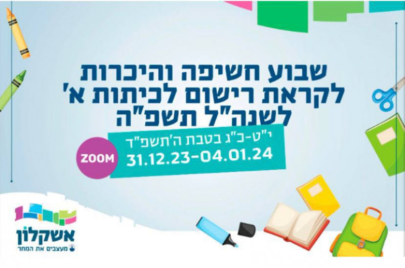 После успеха последних лет муниципалитет Ашкелона через Управление образования снова проведет в этом году, начиная с этого воскресенья, 31 декабря 2023 года, и заканчивая четвергом, 04 января 2024 года, дни ознакомления и знакомства с начальными школами в подготовка к записи в первые классы на 2015 учебный год. Экспозиция будет проходить в ZOOM с 18:00 до 20:30 для удобства родителей.