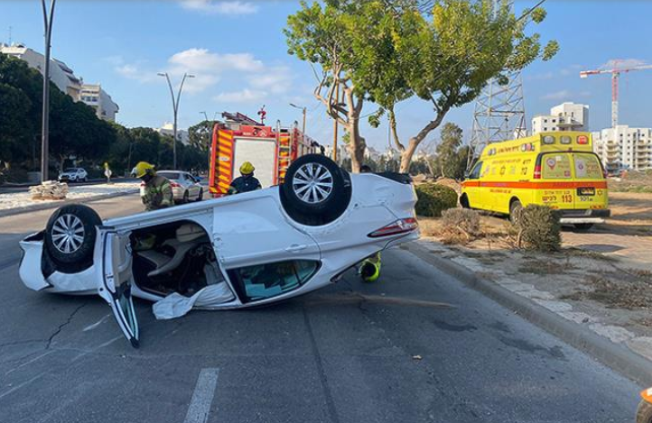 На бульваре Ицхака Рабина в Ашкелонее водитель не справился с управлением, и автомобиль перевернулся.