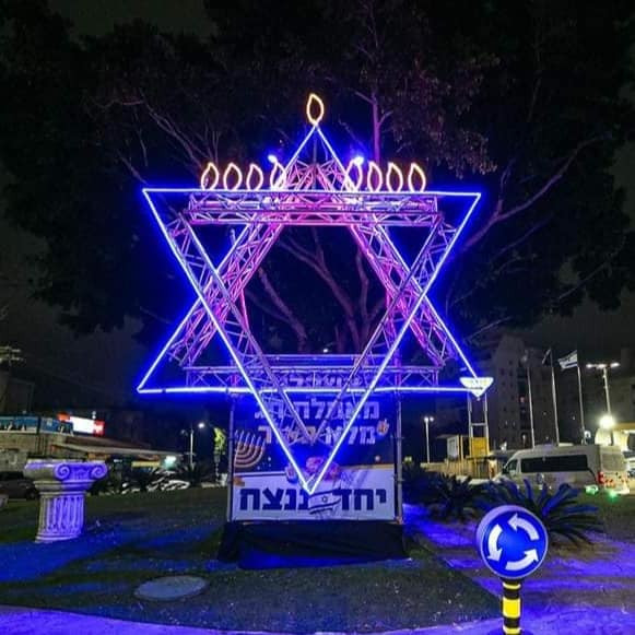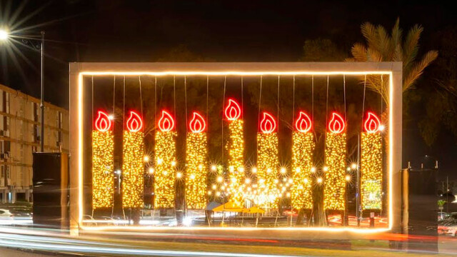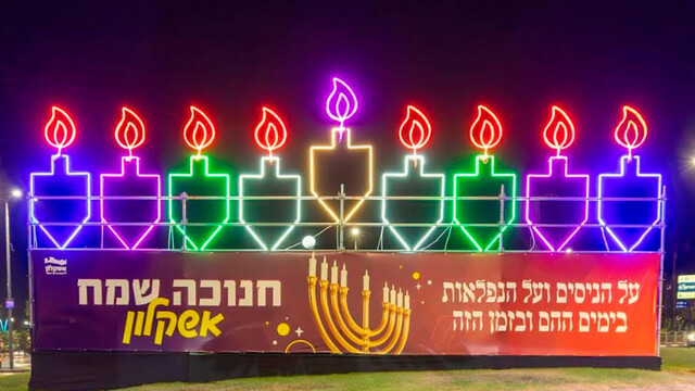 В свете и цвете: гигантские светящиеся меноры Хануки украшают Ашкелон