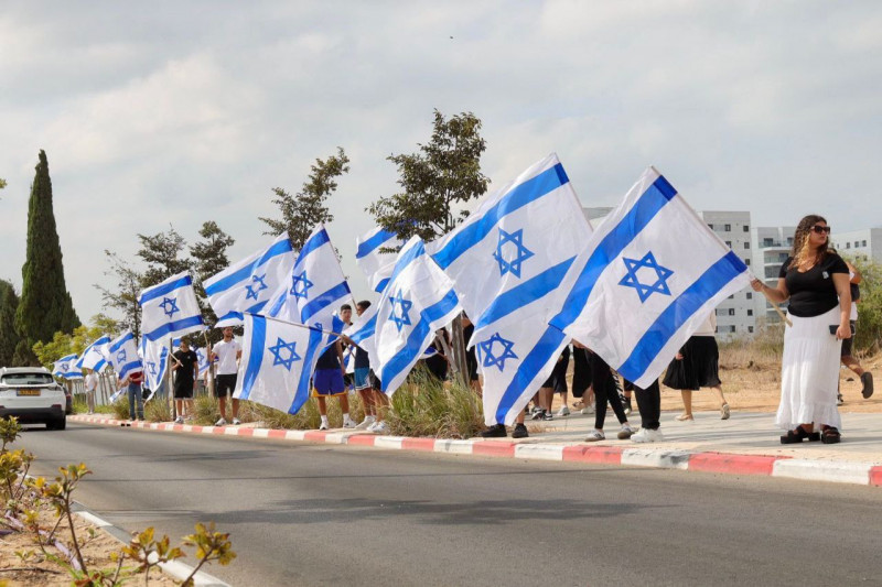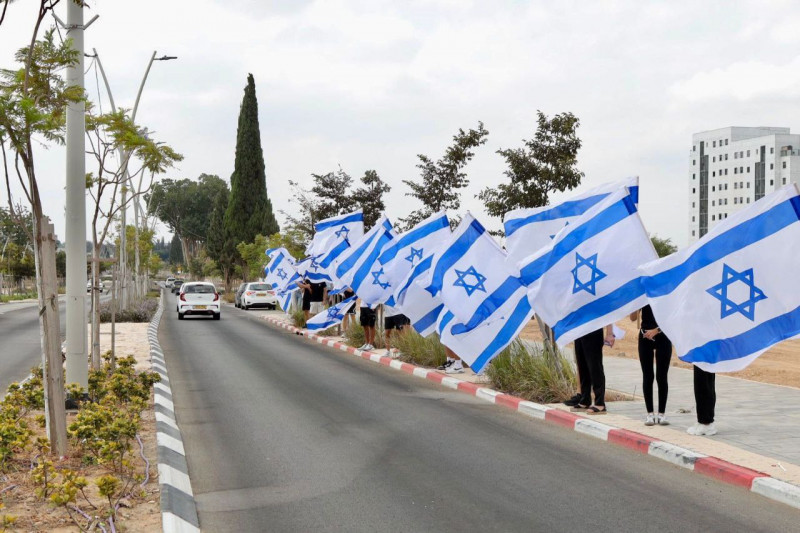 Живая цепочка флагов в Ашкелоне на проводах героя