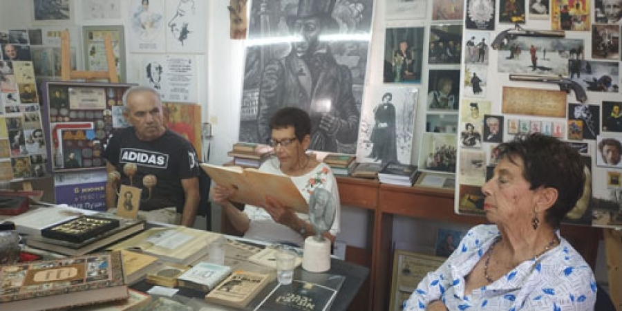 Экскурсию провел писатель Леонид Финкель, секретарь Союза русскоязычных писателей Израиля и создатель этого единственного в стране музея. В роли переводчика выступалапоэт и журналистМарина Гурман, автор книги "Родное и другое". Гости музея внимательно слушали рассказ о поэте, оказавшем столь значительное влияние на культуру и саму ментальность их собратьев-израильтян, рожденных на территории бывшего СССР.
