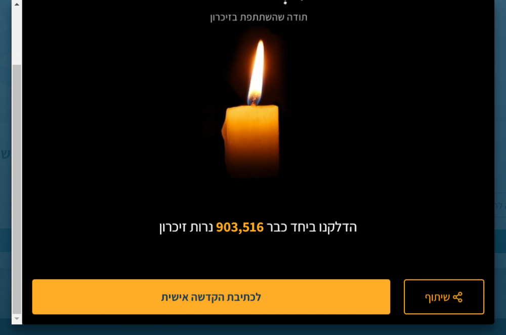 Более 900 тысяч виртуальных свечей зажжены израильтянами на сайте министерства обороны