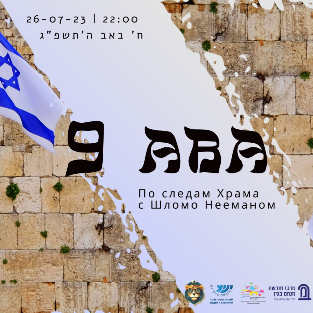 В ночь 9 Ава, 26 июля, мы приглашаем вас присоединиться к нам в путешествии к истокам нашей истории. Приходите и вспомните с нами о Храме - его строении, сражениях и падении. Вместе мы вспомним наше изгнание римлянами и переживем наше возвращение.