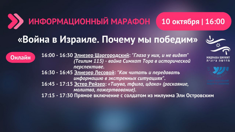 Совет поселений приглашает вас на информационный онлайн марафон «Война в Израиле. Почему мы победим»