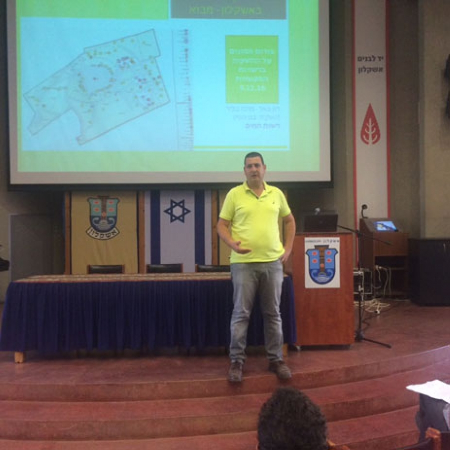На семинаре муниципалитет Ашкелона представляли директор операционного отдела Мишель Барак, руководитель отдела орошения и фонтанов Арье Леви, директор отдела благоустройства и ландшафтного дизайна Эли Израэли и руководитель отдела GIS Шлома Прахия.