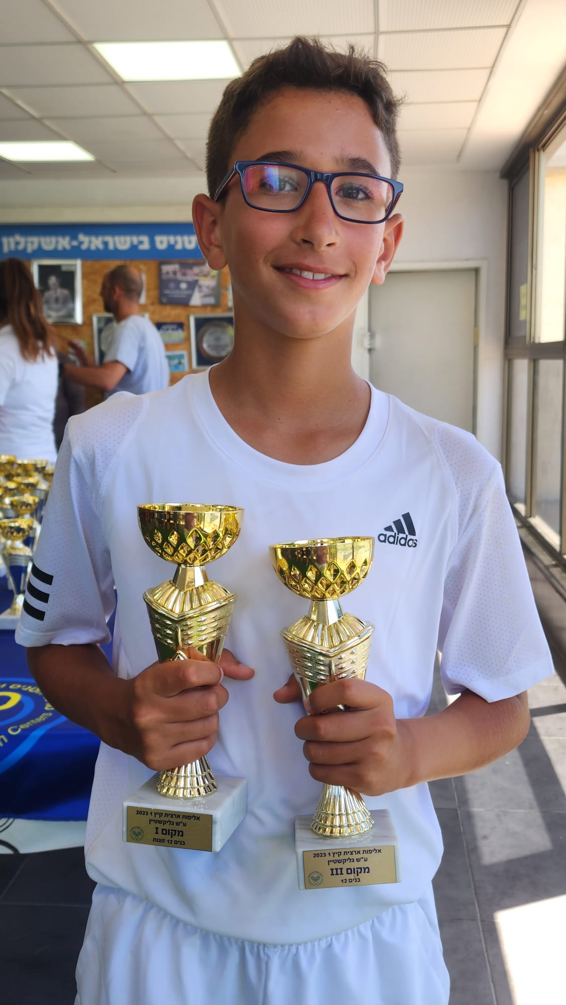 Рам Ашкелони, 12 лет, играет в теннис уже восемь лет, четыре из которых были соревновательными, и в настоящее время занимает шестое место в Израиле.