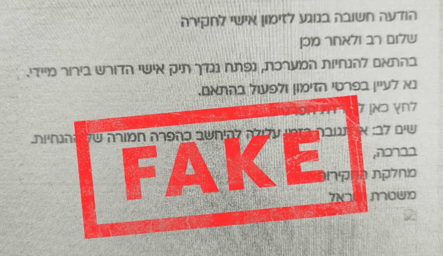 В полиции Израиля разъясняют, что это фейковые сообщения, и речь идет о попытке мошенничества. Ссылка, прикреплённая к сообщению, ведёт на поддельную страницу.