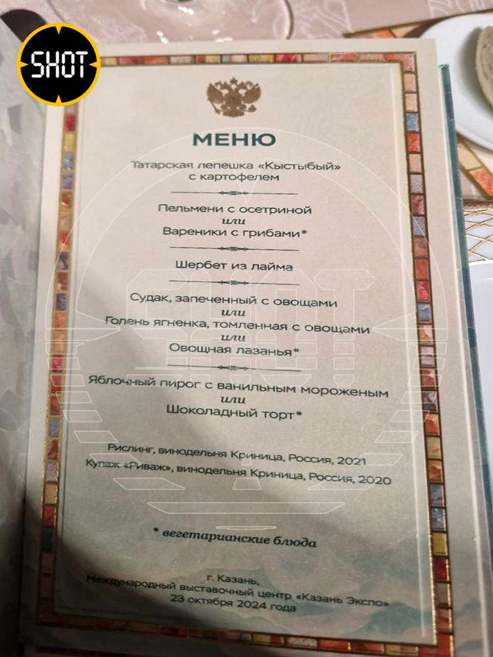 В сеть слили меню, предоставленное лидерам, прибывшим на саммит БРИКС в Казани.