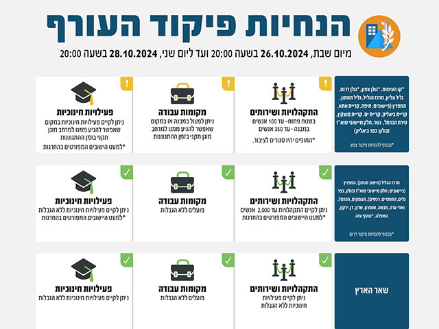 Вечером в субботу, 26 октября, командование Службы тыла опубликовало обновленные распоряжения, касающиеся некоторых районов севера Израиля.