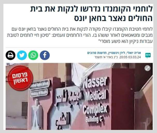 Бойцы спецназа ЦАХАЛ получили приказ командования убрать территорию больницы Насер в Хан-Юнесе.