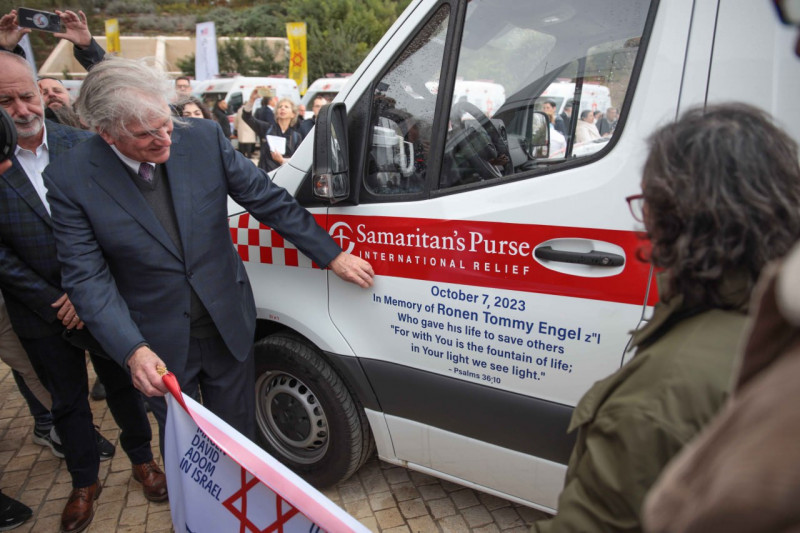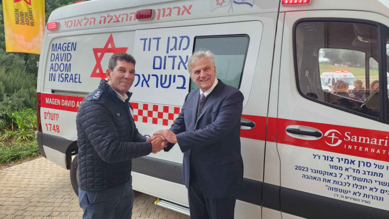 На церемонии присутствовали министр иностранных дел Исраэль Кац, мэр Иерусалима Моше Леон, президент «Кошелька самаритянина» г-н Франклин Грэм и его заместитель г-н Кен Айзекс, генеральный директор MDA Эли Бин, руководство организации, сотрудники и волонтеры. .