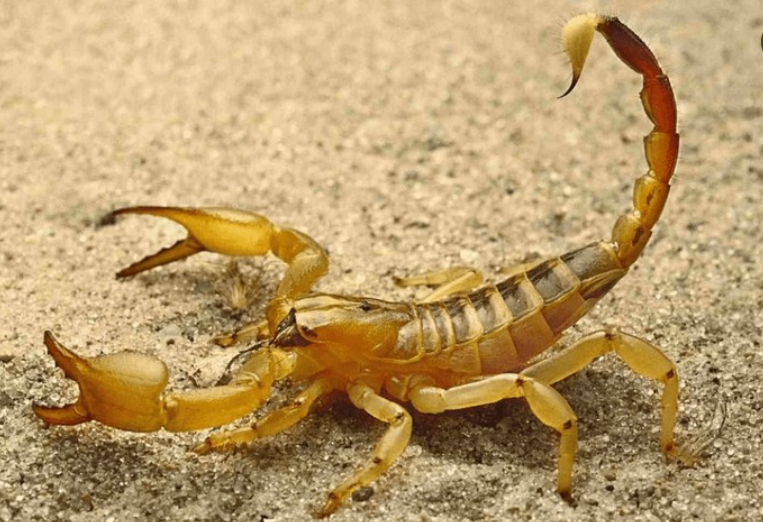 Желтый скорпион (Leiurus quinquestriatus, именуемый также палестинским или израильским скорпионом) обладает активным и довольно агрессивным характером. Их яд очень сильный и содержит смесь нейротоксинов c дозой ЛД50 (средняя доза вещества, вызывающая гибель половины членов испытуемой группы). Активность яда зависит от клешней: у особей с сильными клешнями яд менее опасный, нежели у особей со слабыми клешнями. Он наиболее опасен для детей, стариков и ослабленных людей (особенно людей с заболеваниями сердца); для взрослых здоровых людей представляет меньшую опасность. Однако любая интоксикация может завершиться анафилаксией – потенциально опасной для жизни аллергией на яд. Обычная причина смерти в случаях, когда человека жалит желтый скорпион – отек лёгких.