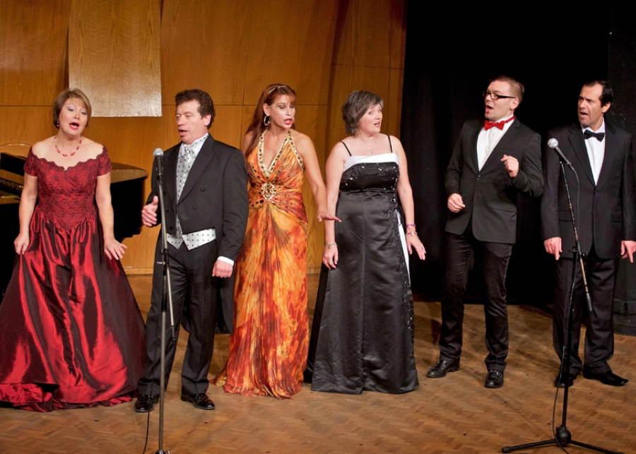 (На фото: оперные исполнители, участники концерта "Жемчужины оперы" и участницы танцевального коллектива "Музеон")